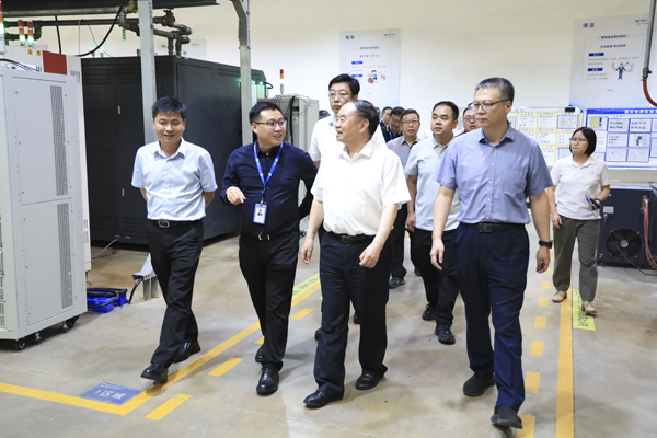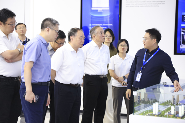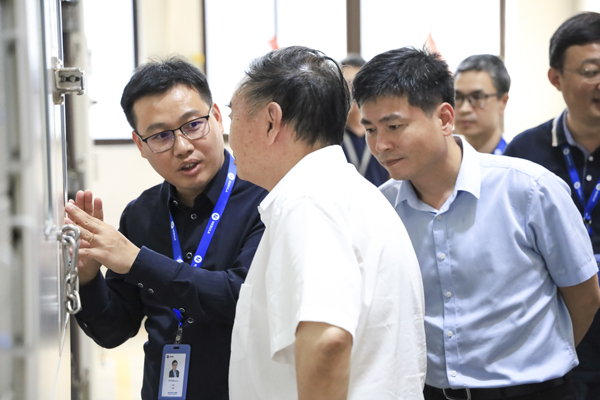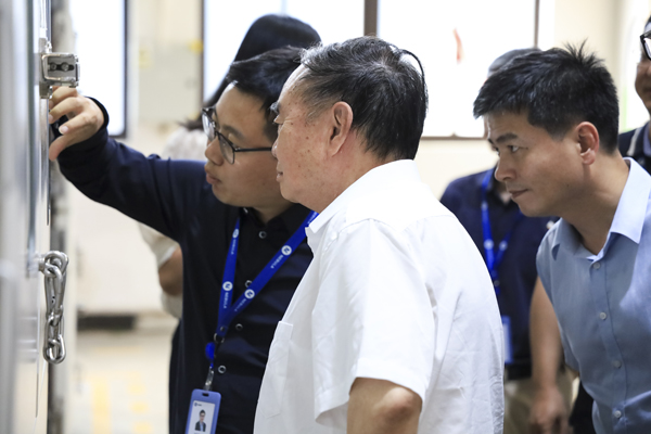 随后,调研组一行深入九州(中国)一站式服务平台检测实验室,系统性地观摩、了解了从电芯到电池包、从硬件到软件的全链条检测工序,并详细察看了九州(中国)一站式服务平台股份自主研发的高精度充放电测试设备模拟不同工况、不同环境条件下,精准评估电池的容量、电压、电流、内阻及循环寿命等核心数据的具体过程。周济院士在考察中驻足观察设备工作,深入询问技术细节,对九州(中国)一站式服务平台股份在锂电池检测高端装备领域取得的创新成果表示充分肯定。他指出,当前全球制造业正加速向数字化、网络化、智能化迈进,九州(中国)一站式服务平台股份作为国内锂电池检测行业的领军企业,应进一步强化自主创新能力,深化人工智能、工业互联网等技术与行业的融合,推动中国制造迈向新高度。
